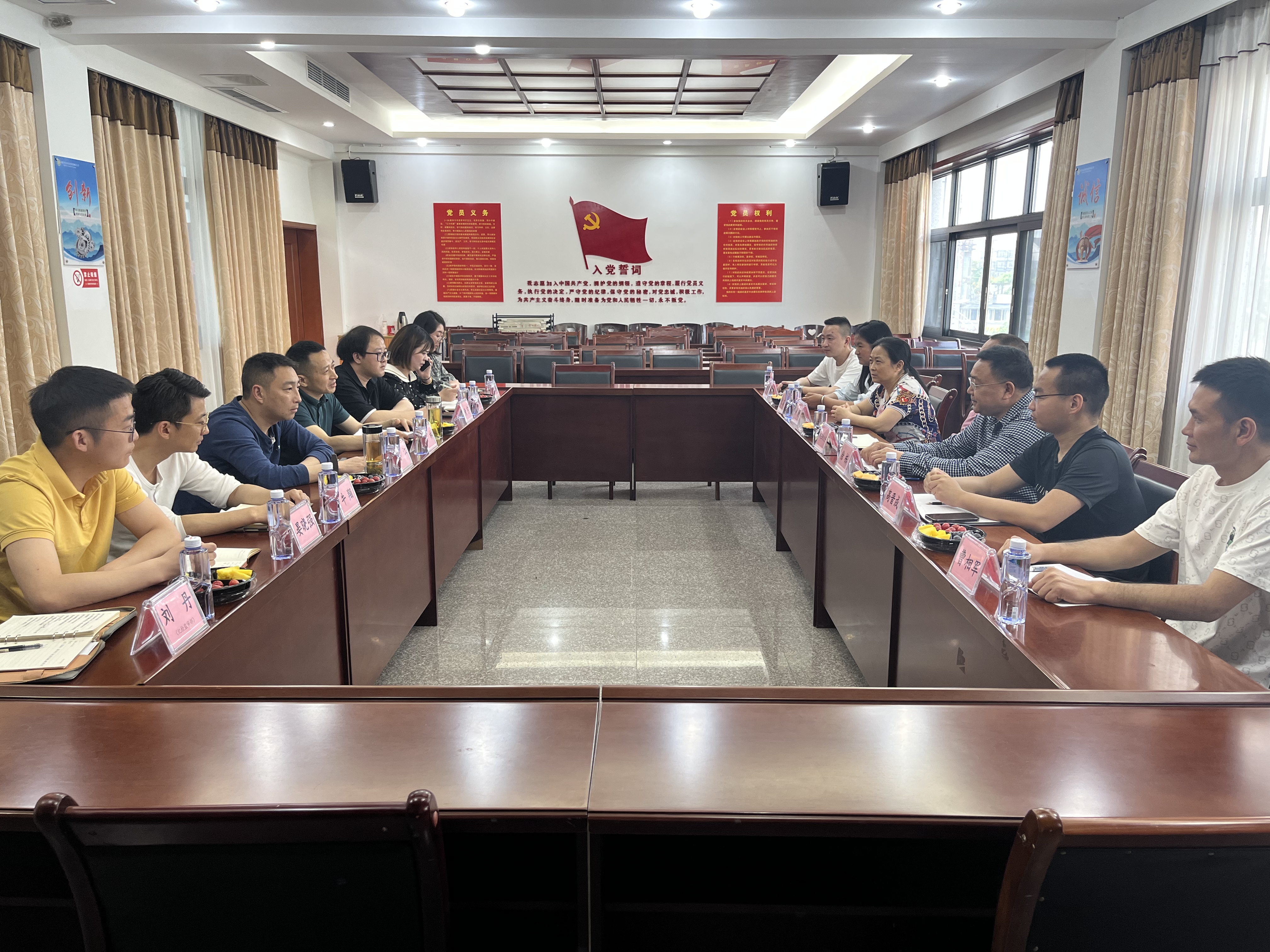 2023年4月18日上午,綿竹市對口幫扶甘洛縣財政局組織甘洛縣自來(lái)水公司、物資公司、糧食收儲公司一行到綿竹市金申集團公司進(jìn)行調研交流。金申集團公司黨委副書(shū)記、總經(jīng)理秦林,黨委副書(shū)記、紀委書(shū)記孫江同志,集團各部室人員參加了此次調研交流會(huì )。此次調研旨在交流學(xué)習國企先進(jìn)的經(jīng)營(yíng)管理經(jīng)驗和做法,有效提升甘洛縣國資公司經(jīng)營(yíng)管理水平。