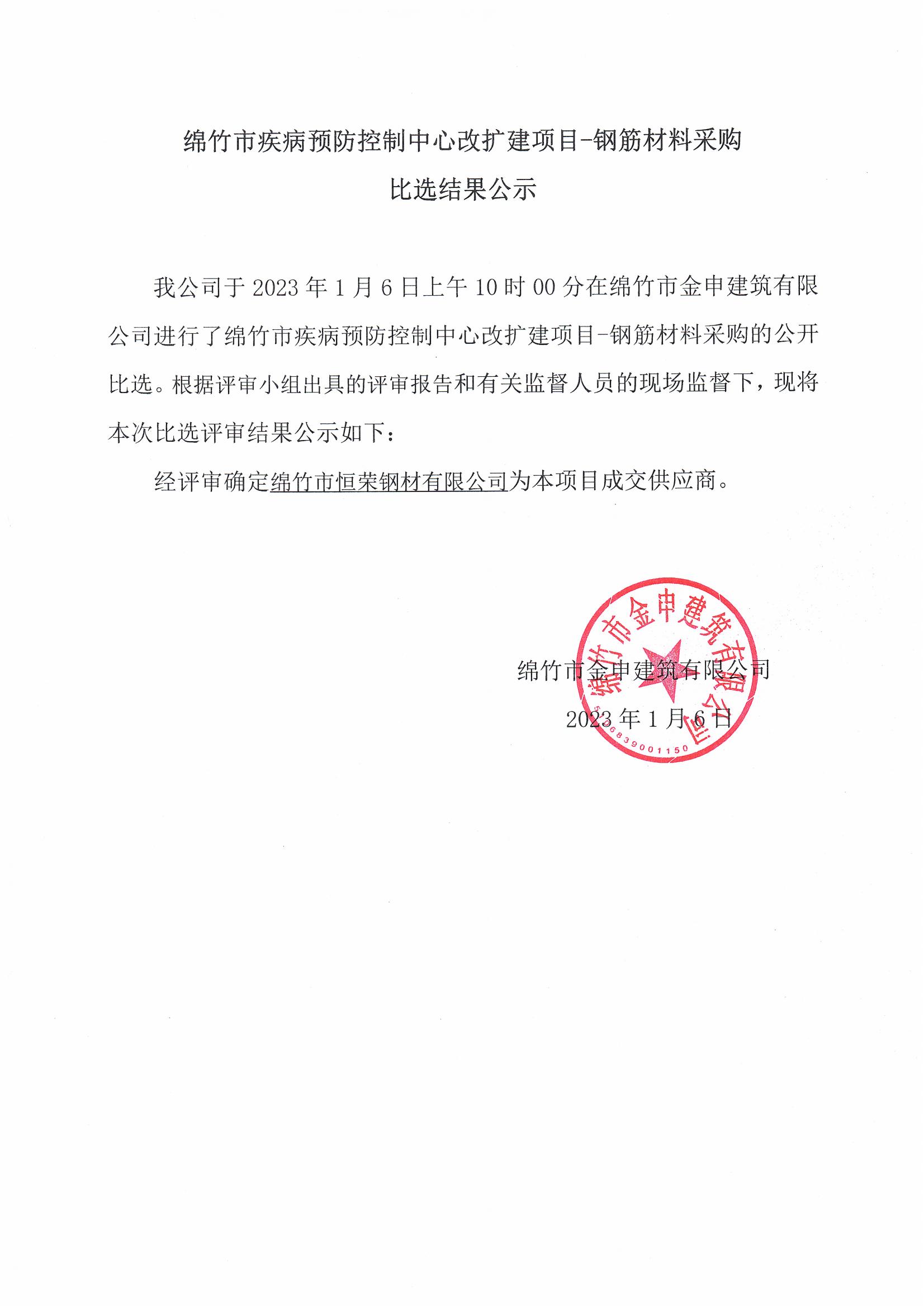 綿竹市疾病預防控制中心改擴建項目-鋼筋材料比選結果公示