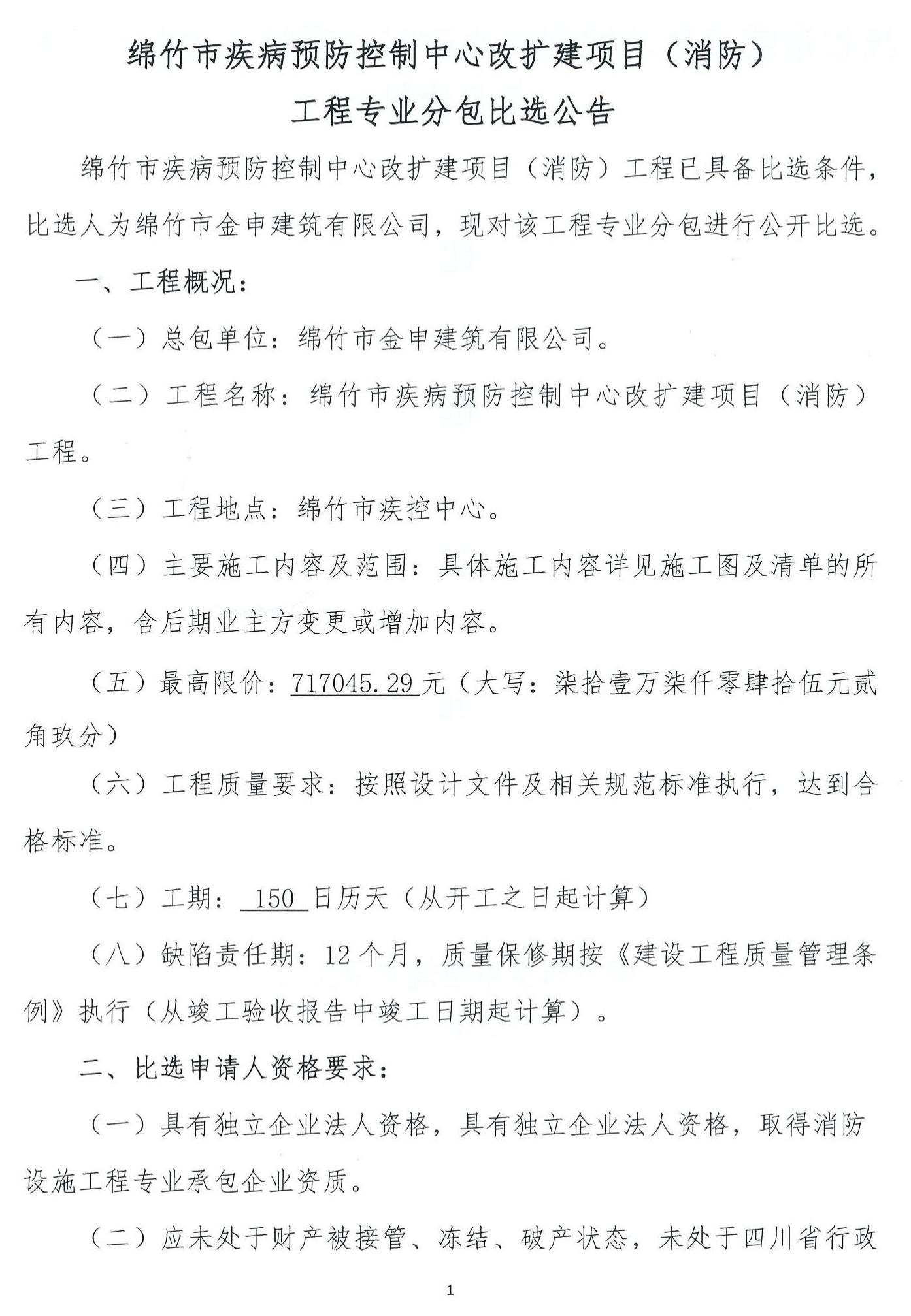 綿竹疾病預防控制中心改擴建項目(消防)分包比選公告
