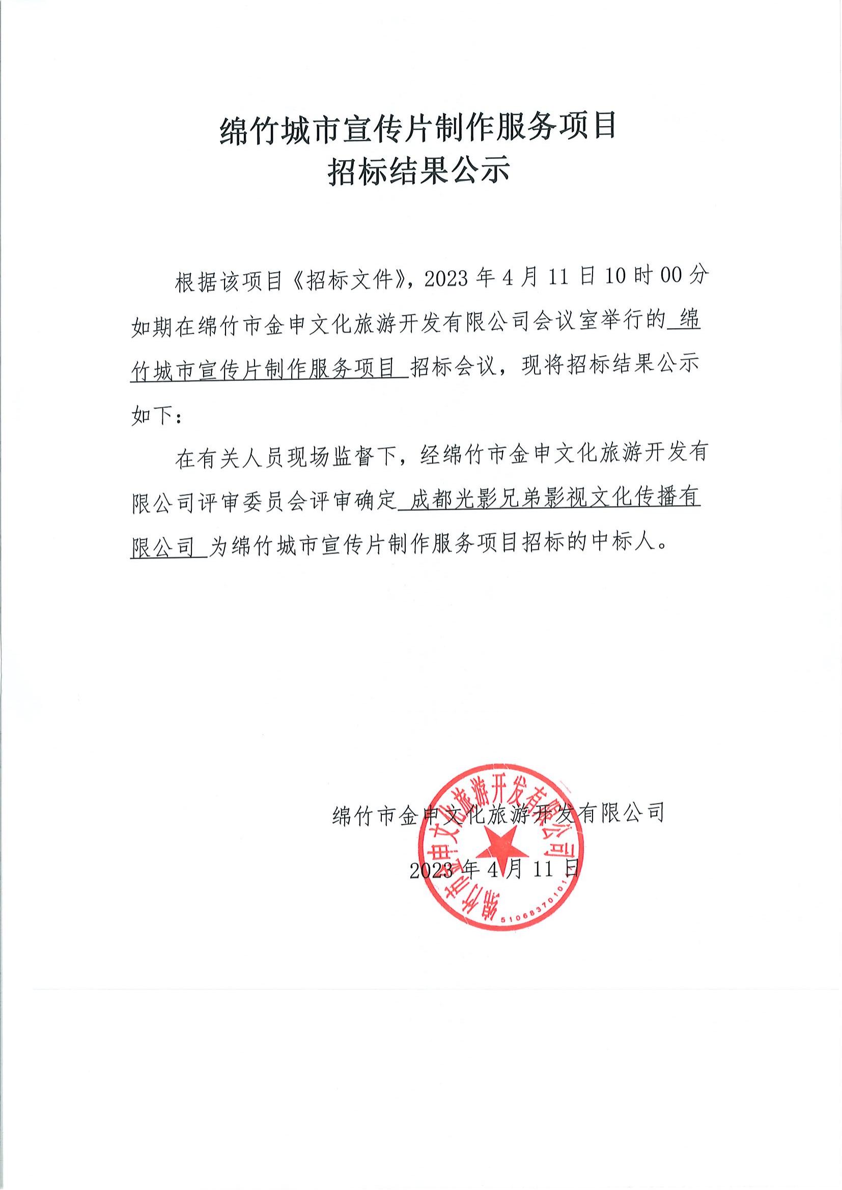綿竹城市宣傳片制作服務(wù)項目招標結果公示