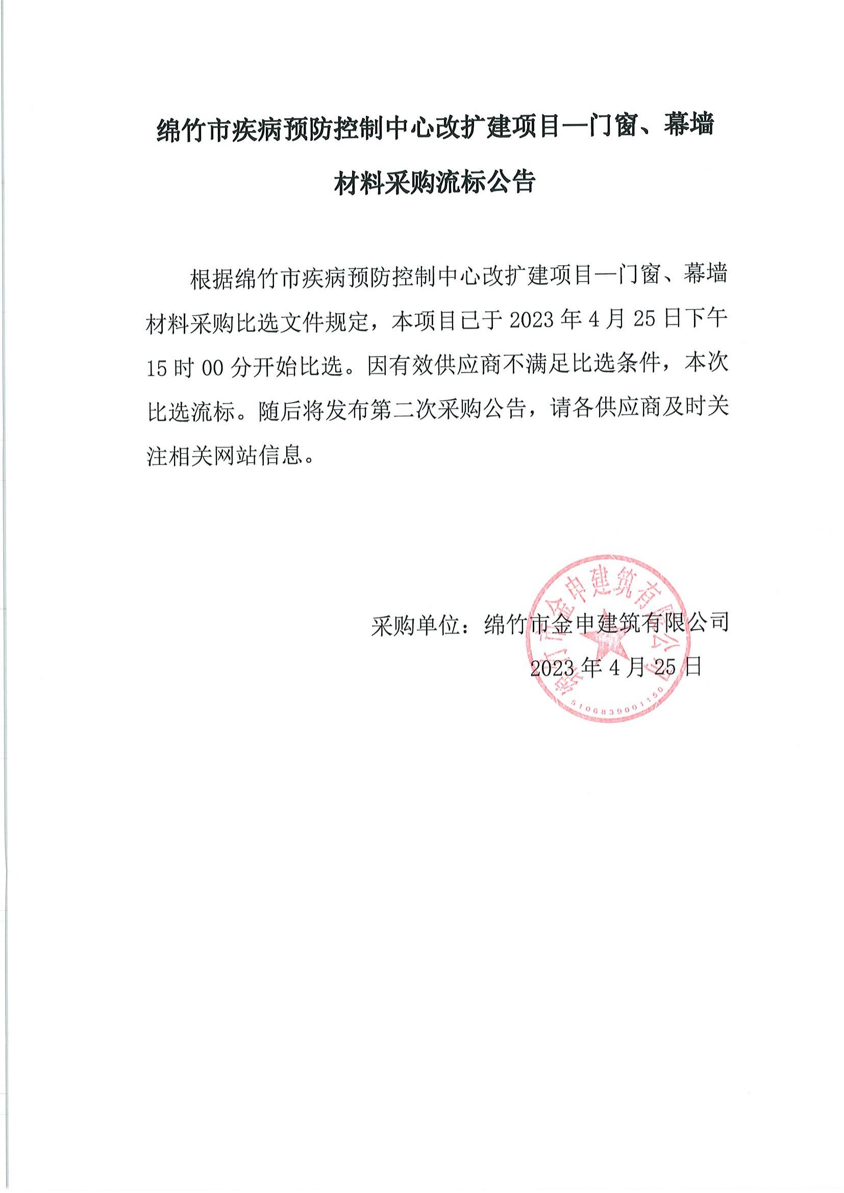 綿竹市疾病預防控制中心改擴建項目門(mén)窗幕墻采購流標公告