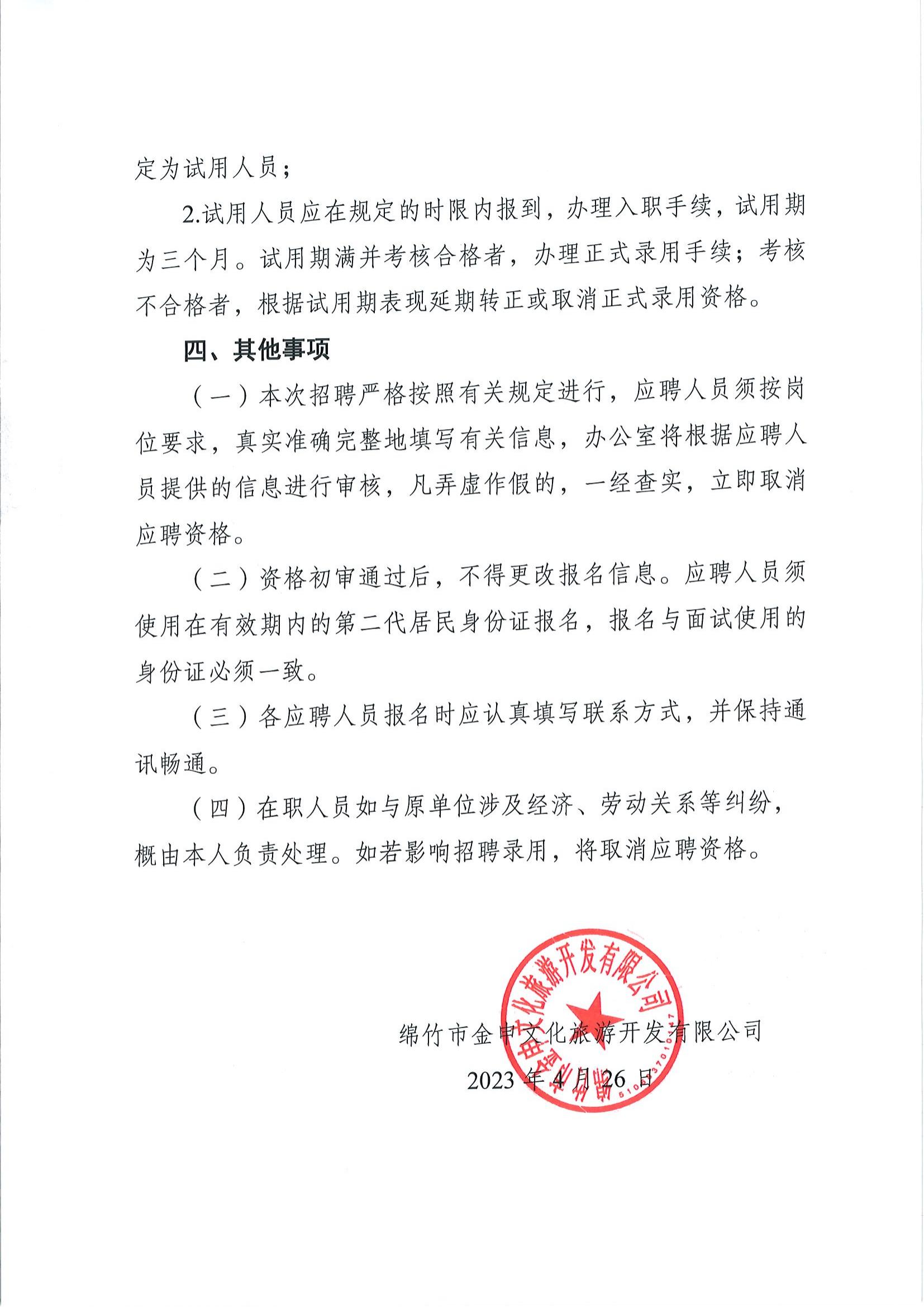 綿竹市金申文化旅游開(kāi)發(fā)有限公司招聘啟事