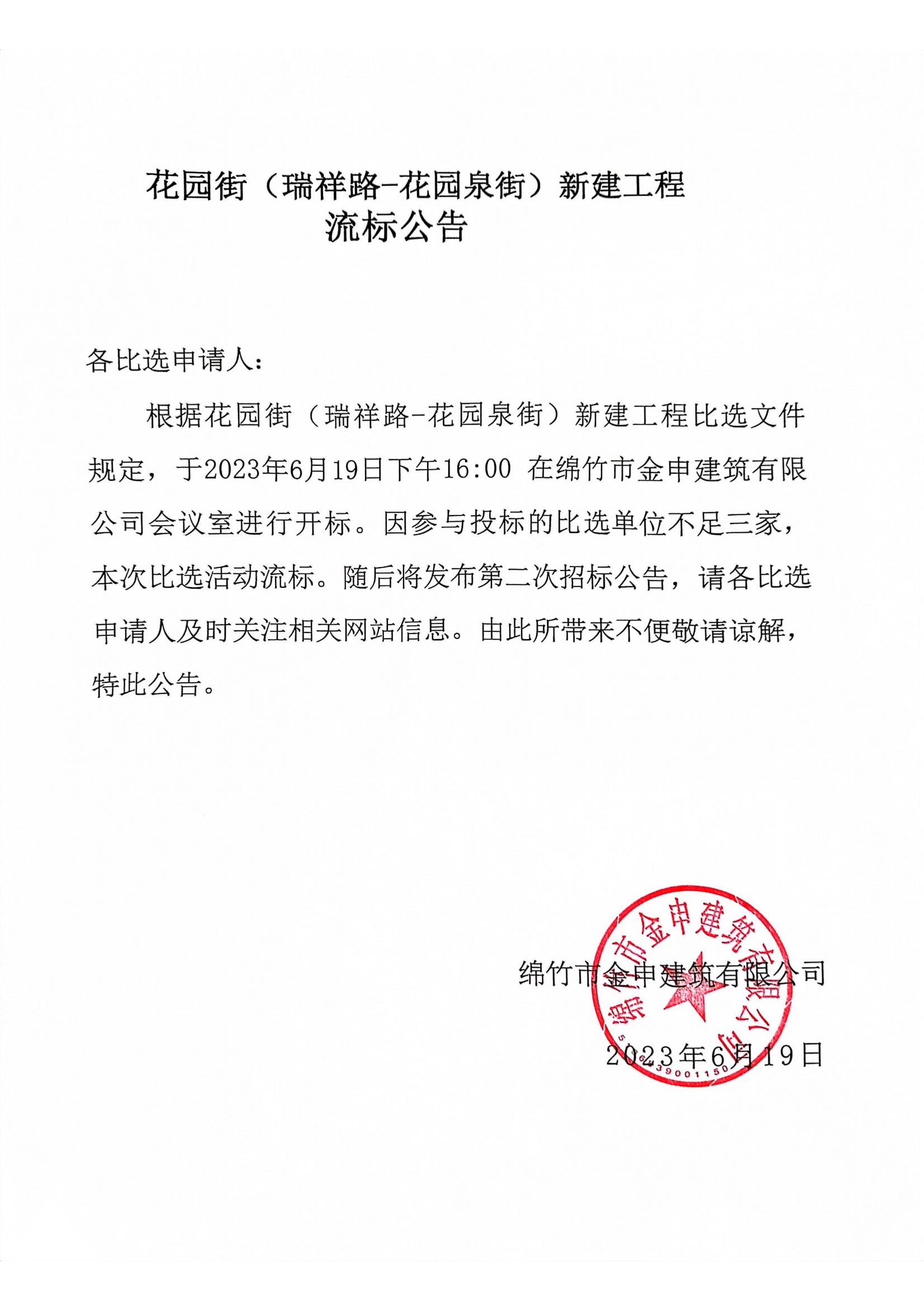 花園街(瑞祥路-花園泉街) 新建工程勞務(wù)分包比選流標公告