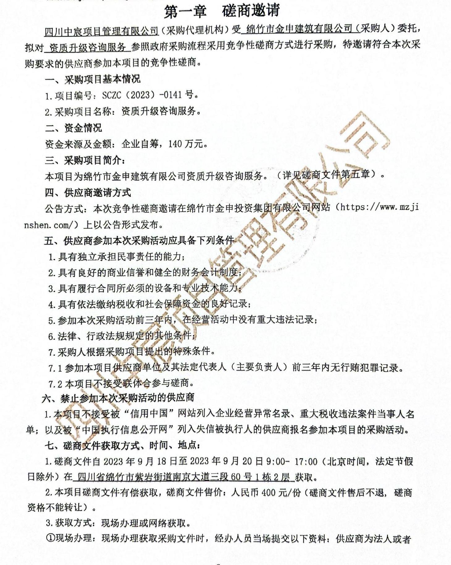 金申建筑公司資質(zhì)升級咨詢(xún)服務(wù)競爭性磋商邀請公告