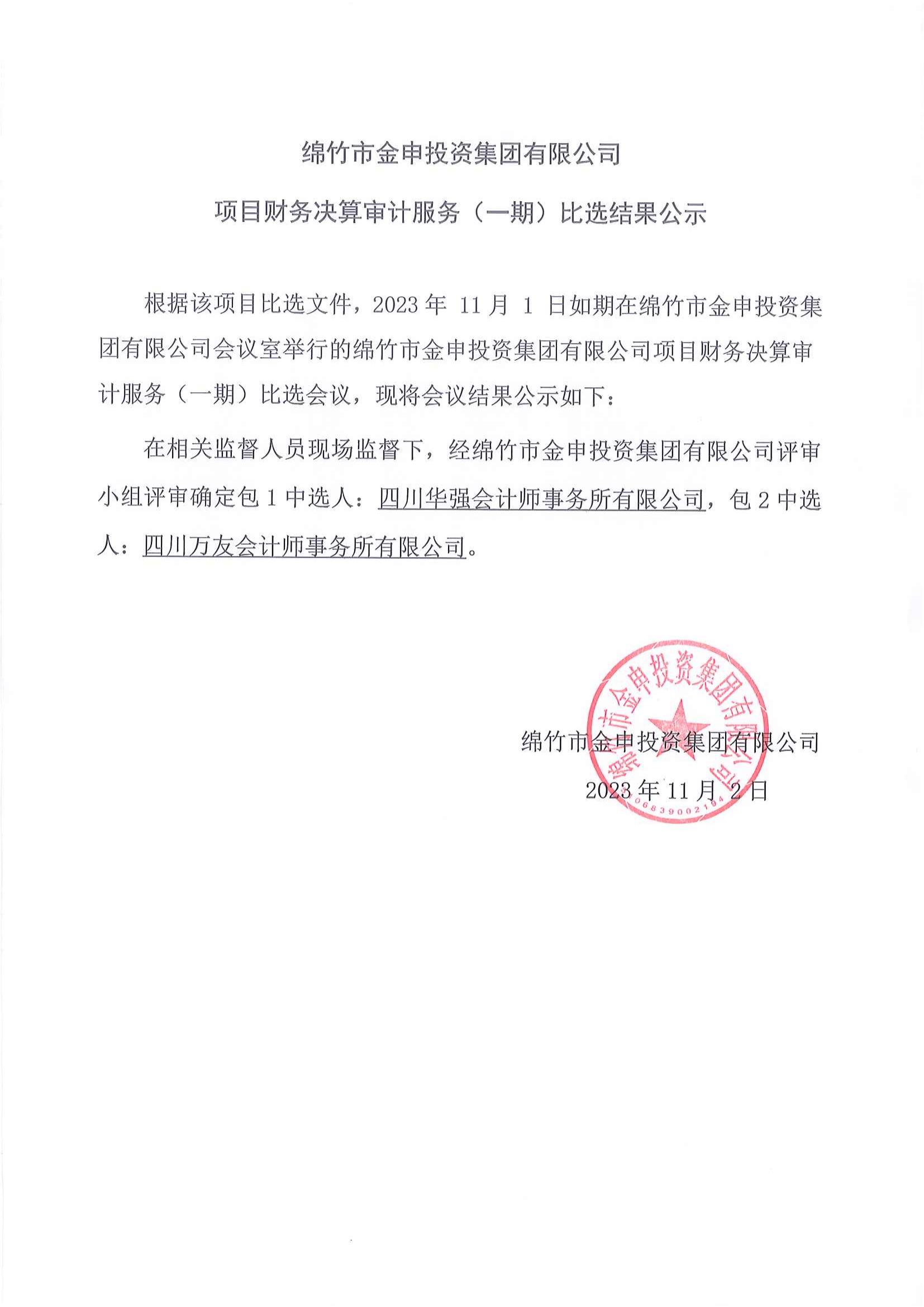 金申集團公司財務(wù)決算審計服務(wù)(一期)比選結果公示