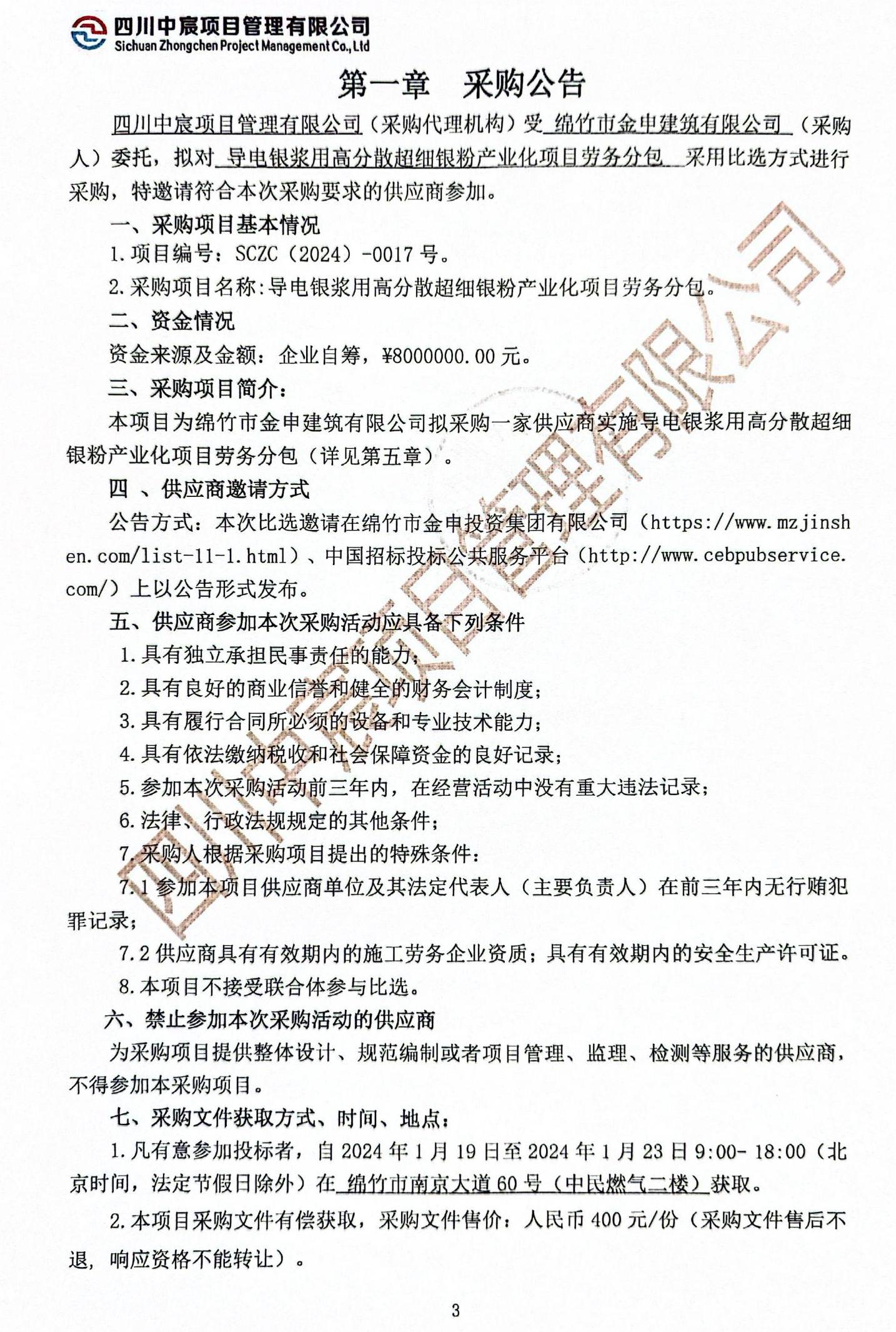 導電銀漿用高分散超細銀粉產(chǎn)業(yè)化項目勞務(wù)分包比選公告