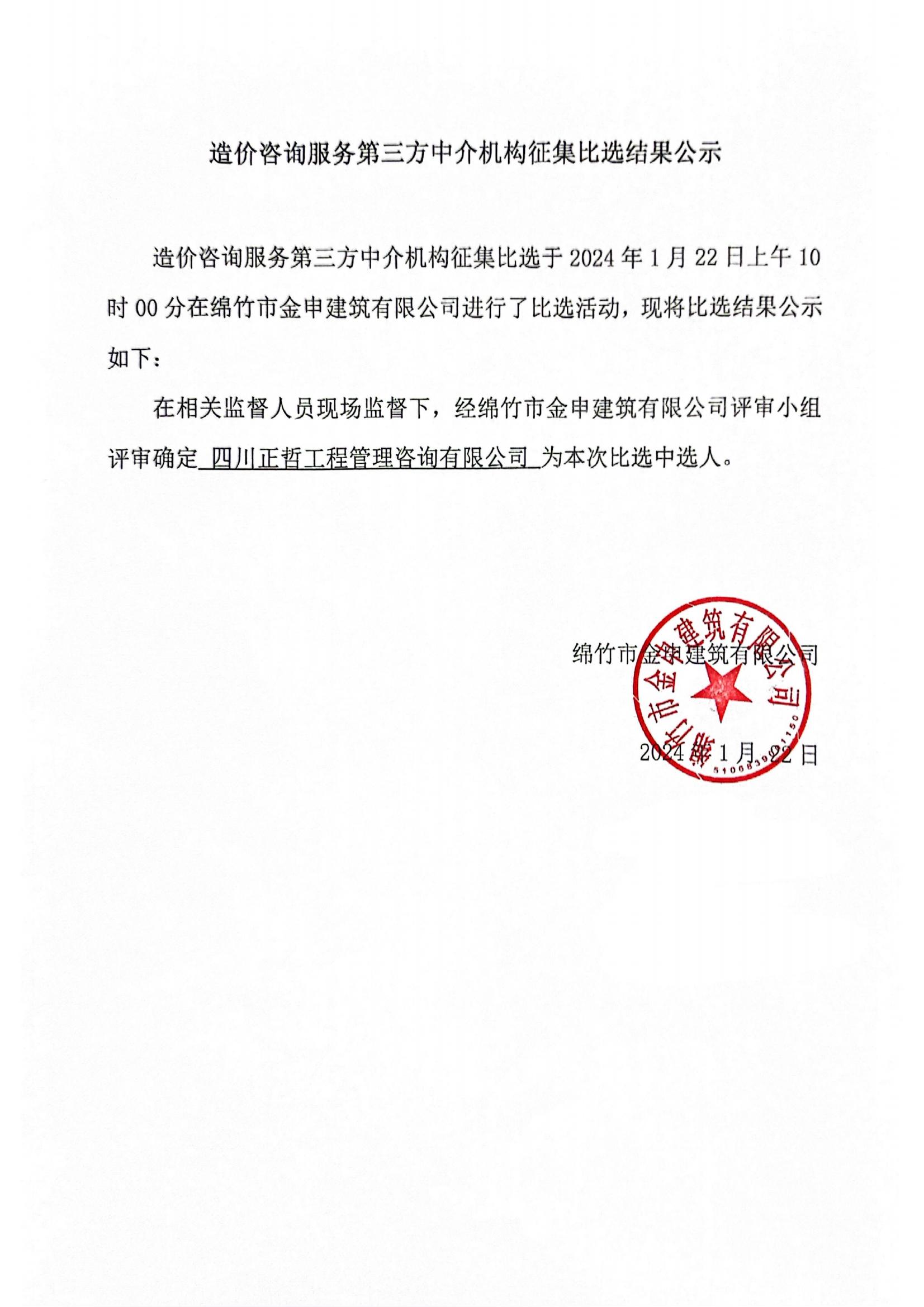 造價(jià)咨詢(xún)服務(wù)第三方中介機構征集比選結果公示