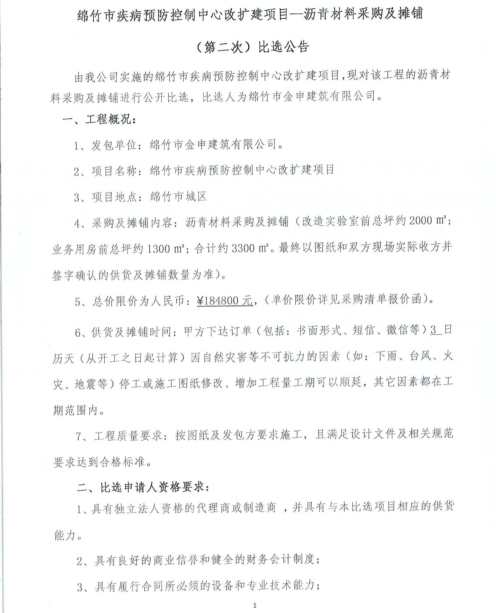 綿竹疾病預防控制中心改擴建項目瀝青材料(第二次)比選公告