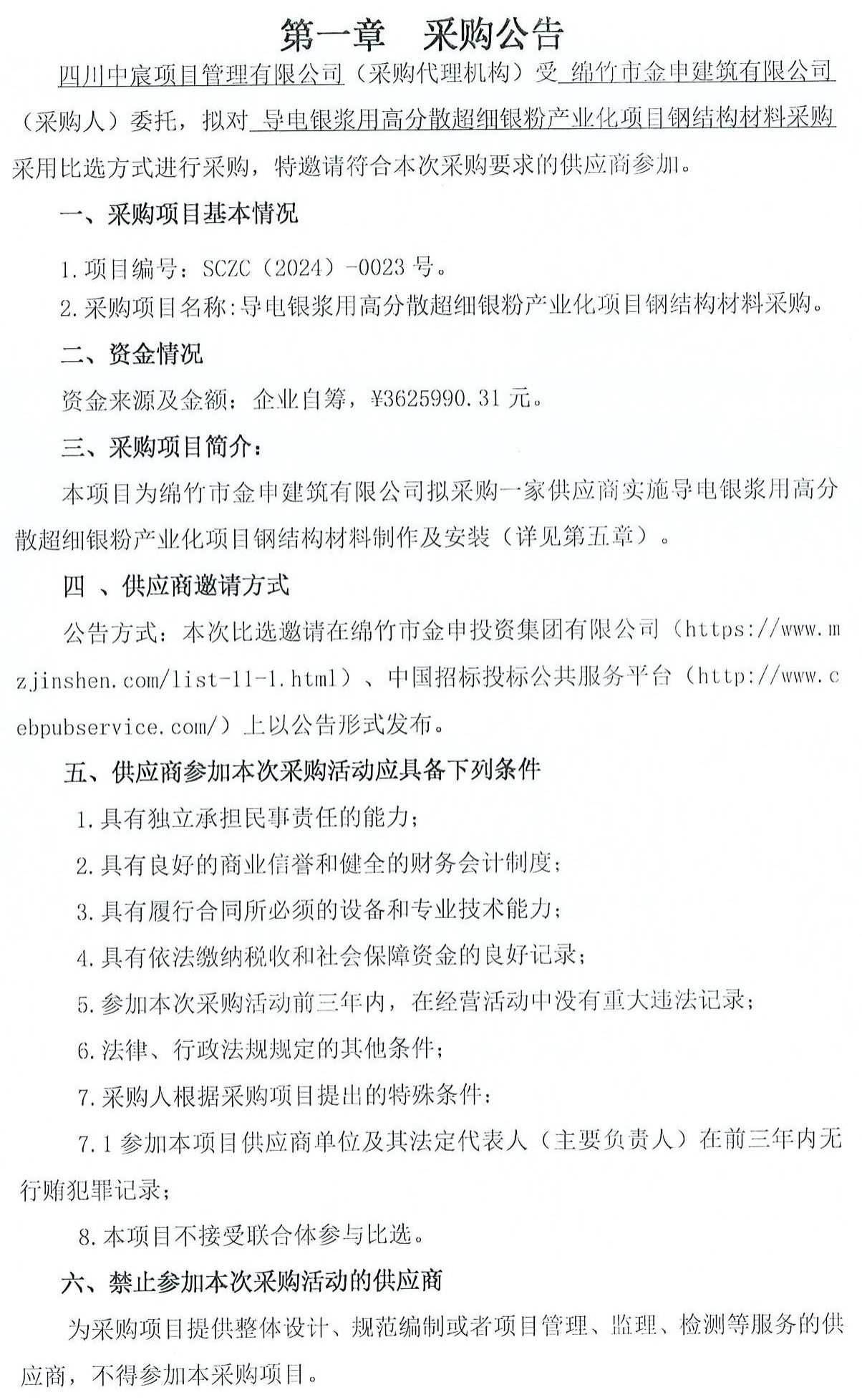 導電銀漿用高分散超細銀粉產(chǎn)業(yè)化項目材料采購比選公告