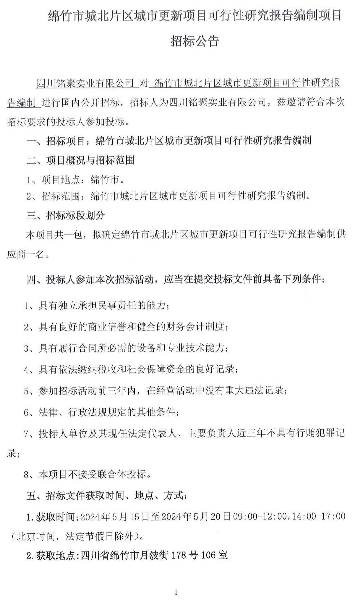 綿竹市城北區城市更新項目可行性研究報告編制招標公告