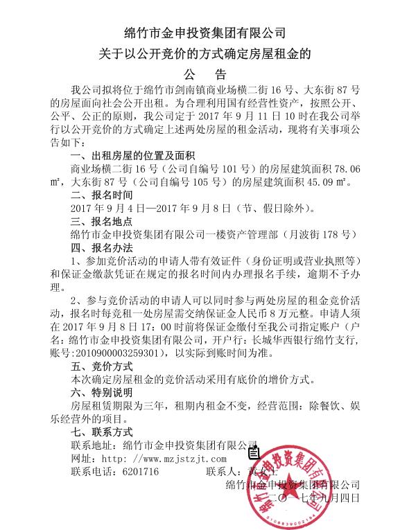 關(guān)于以公開(kāi)競價(jià)的方式確定房屋租金的公告