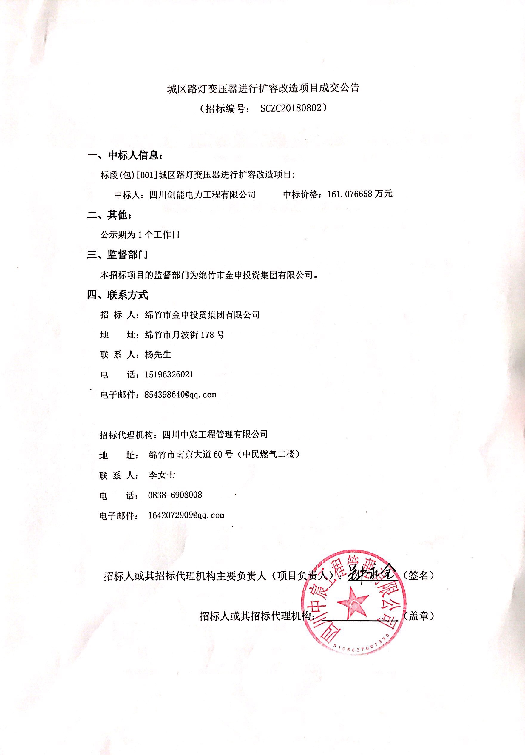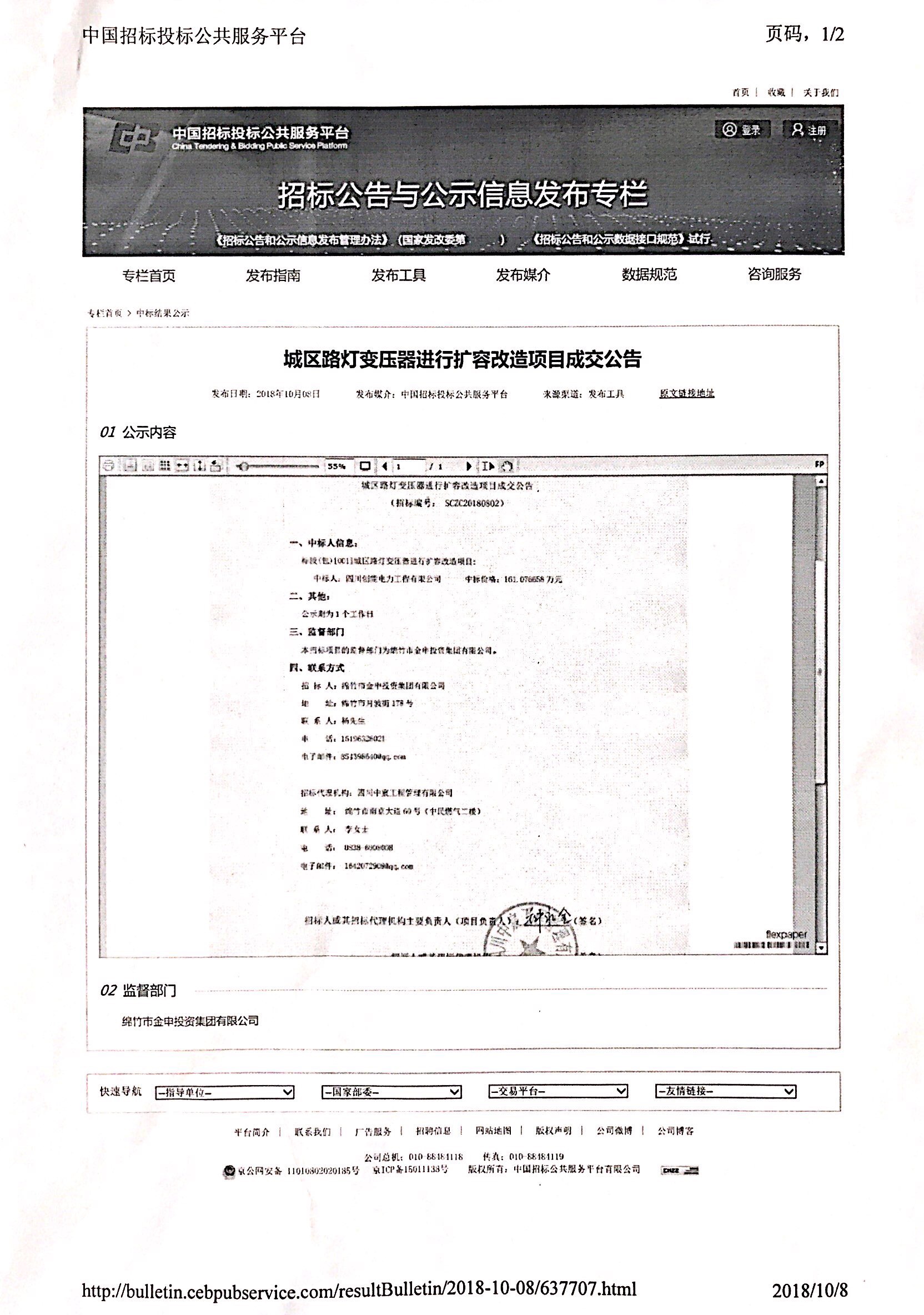 城區路燈變壓器進(jìn)行擴容改造項目成交公告