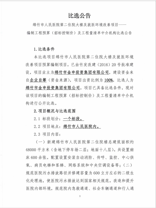 市醫院第二住院樓編制工程預算等中介機構比選公告