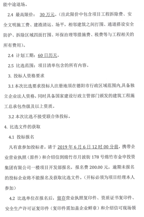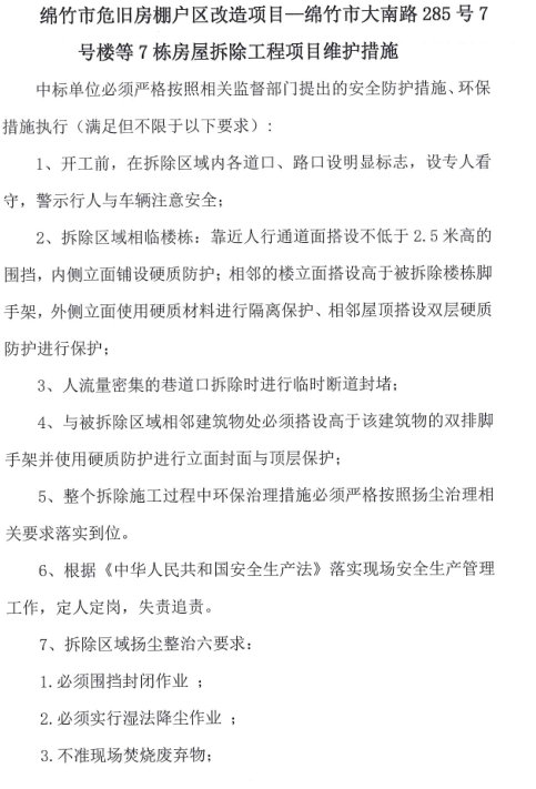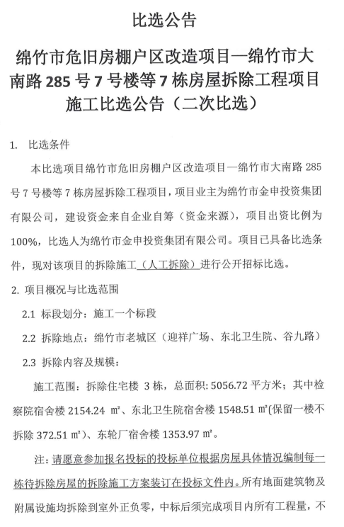 市大南路285號7號樓等7棟房屋拆除工程施工比選公告