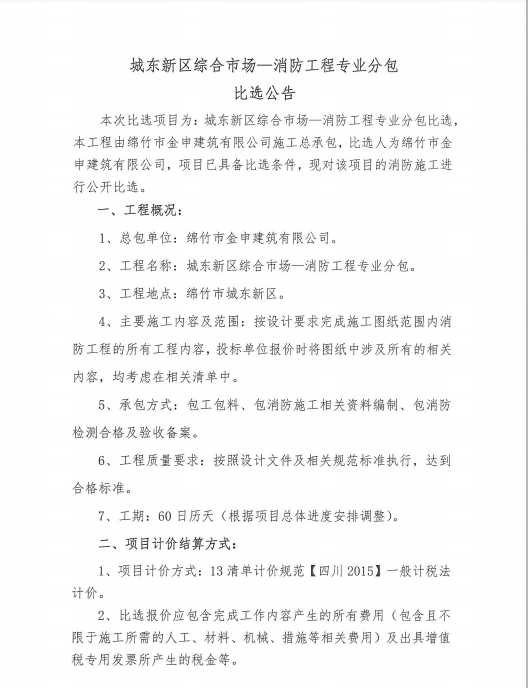 城東市場(chǎng)—消防工程專(zhuān)業(yè)分包比選公告