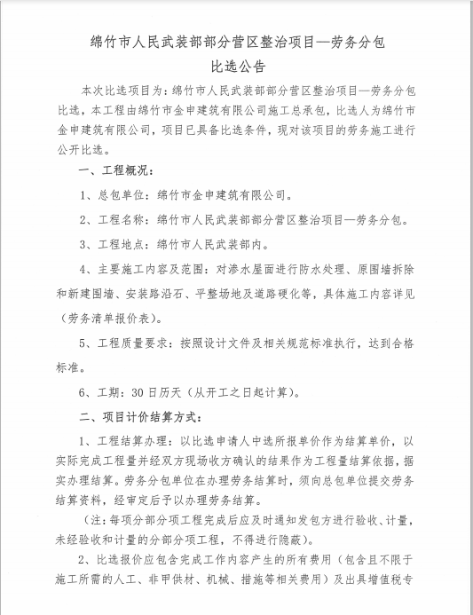 市武裝部部分營(yíng)區整治項目—勞務(wù)分包比選公告