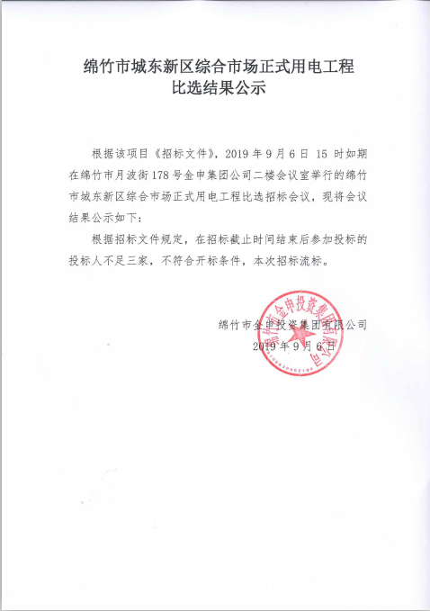 市城東新區綜合市場(chǎng)正式用電工程比選結果公示
