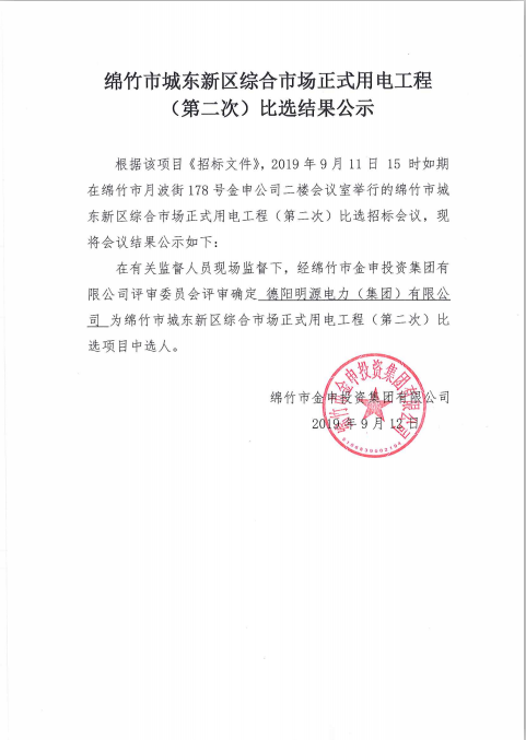 市城東新區綜合市場(chǎng)正式用電工程(第二次)比選結果公示