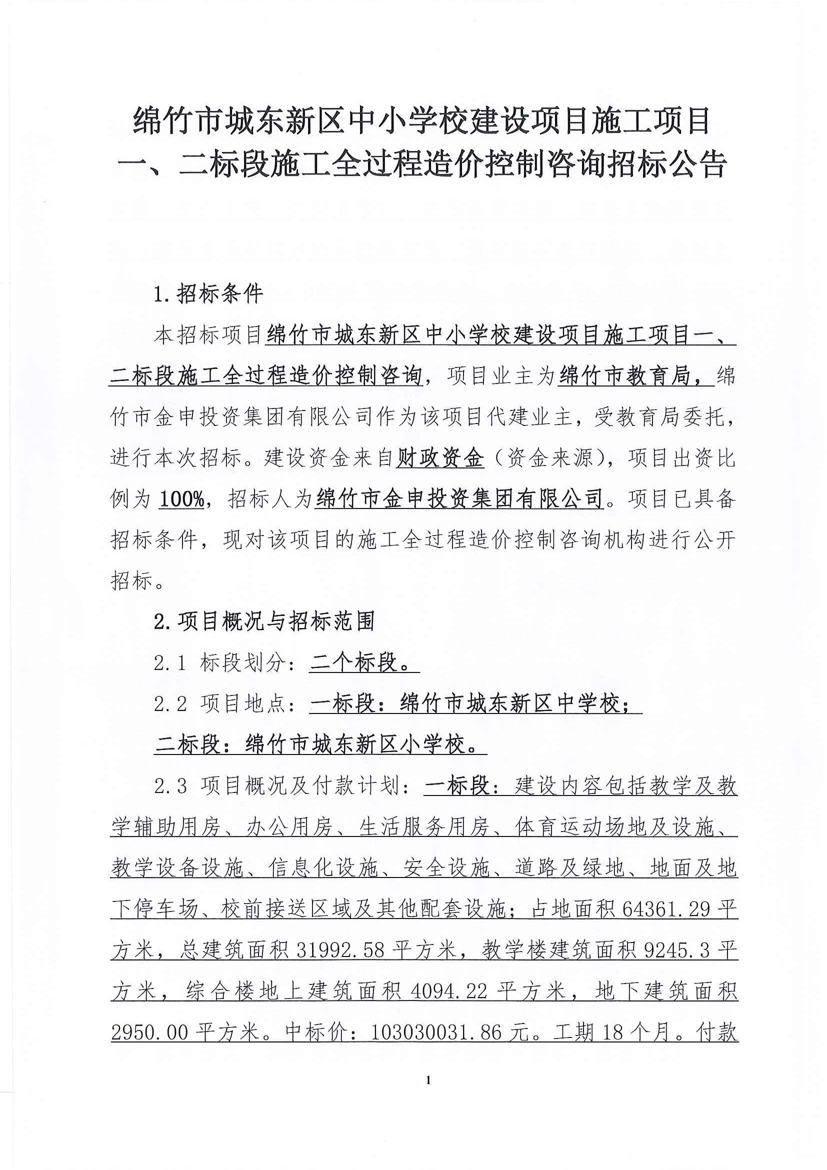 市城東中小學(xué)校建設項目一、二標段施工造價(jià)控制咨詢(xún)公告