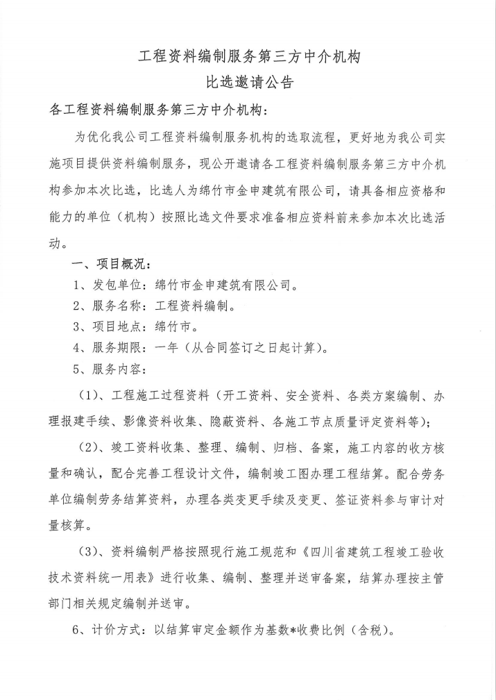 工程資料編制服務(wù)第三方中介機構比選邀請公告