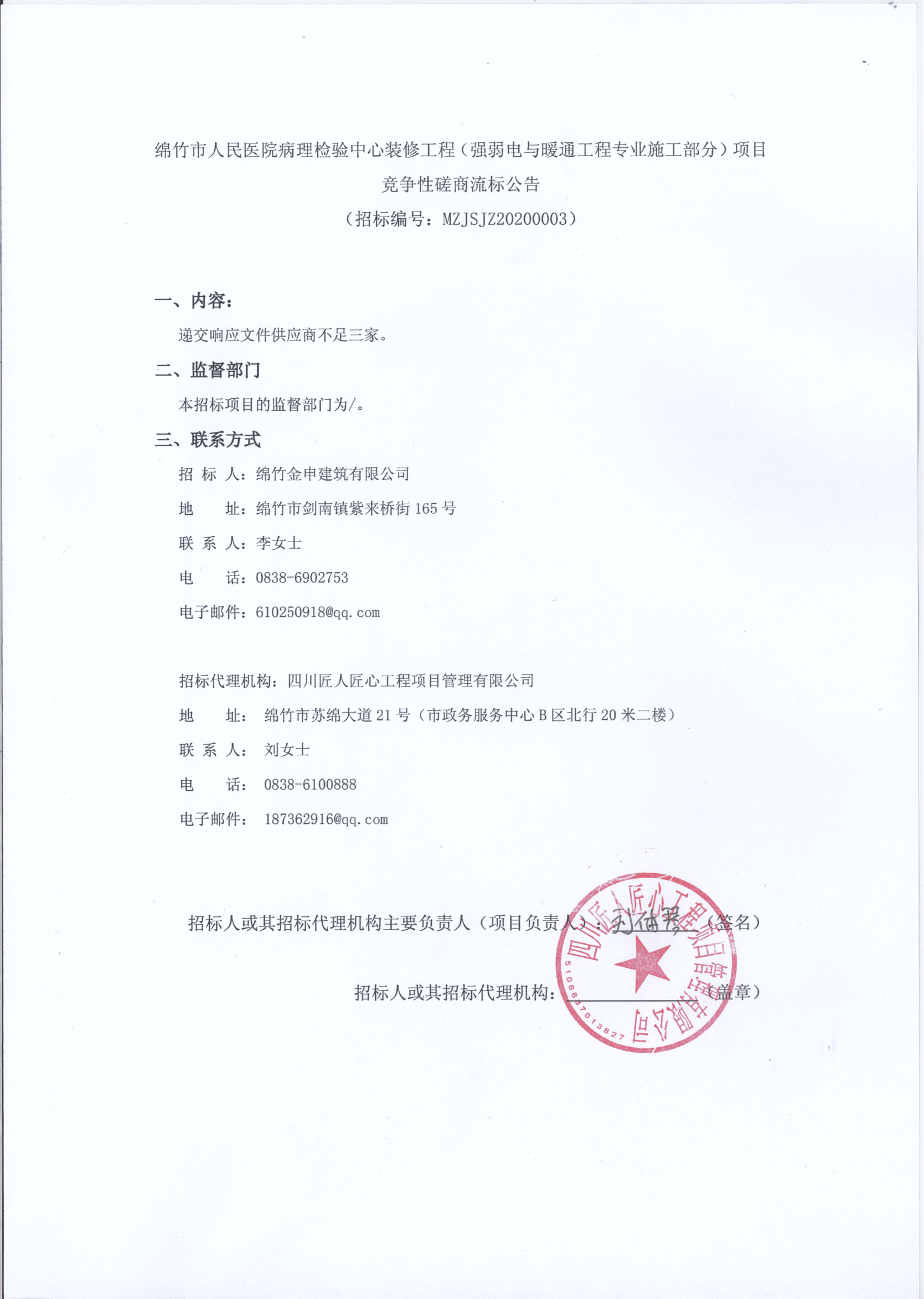 市醫院病理檢驗中心(強弱電工程)項目競爭性磋商流標公告
