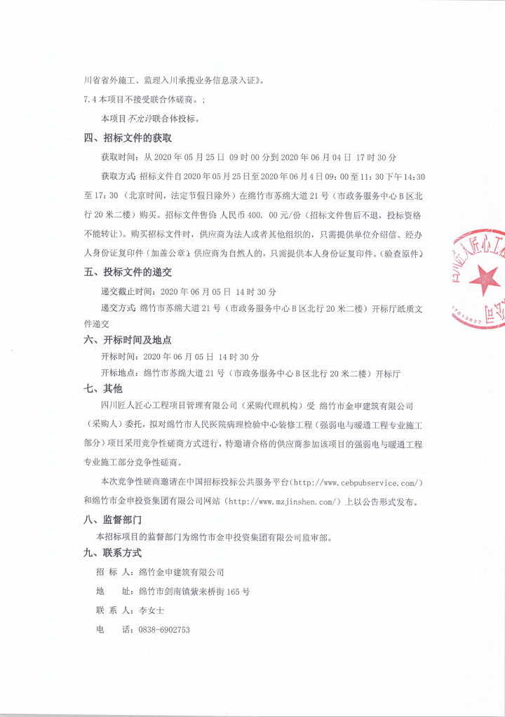 市醫院病理檢驗中心(強弱電工程)競爭性磋商項目二次公告