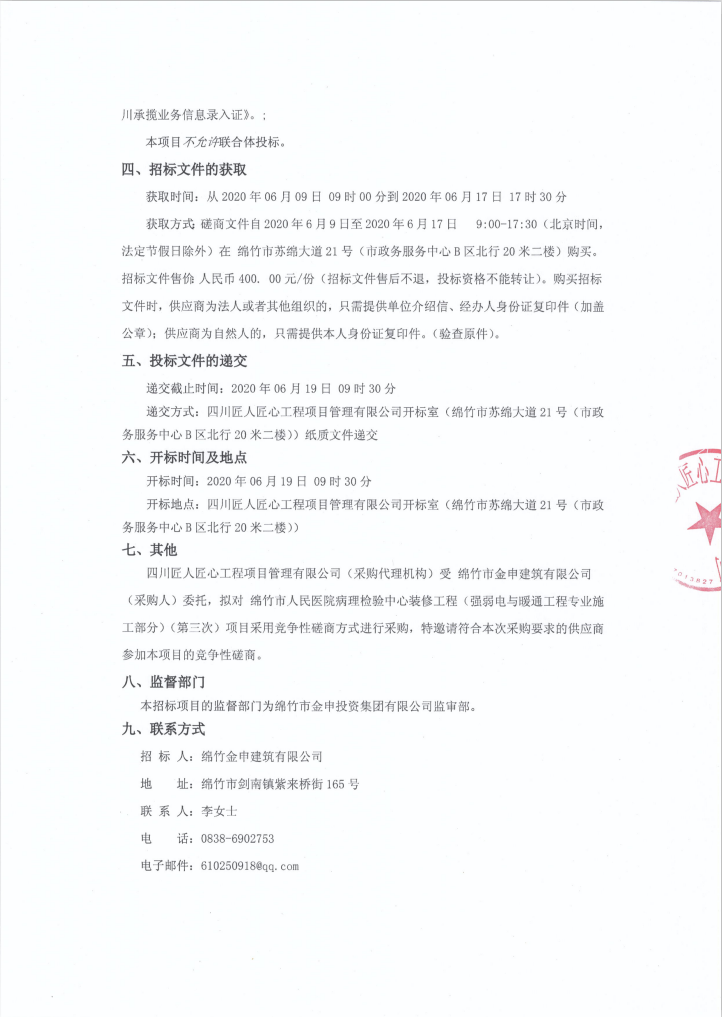 人民醫院病理檢驗中心裝修工程(強弱電工程)第三次招標公告