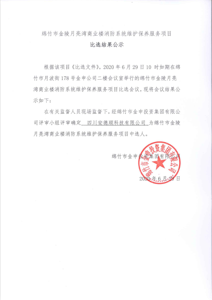 月亮灣商業(yè)樓消防系統維護保養服務(wù)項目比選結果公示