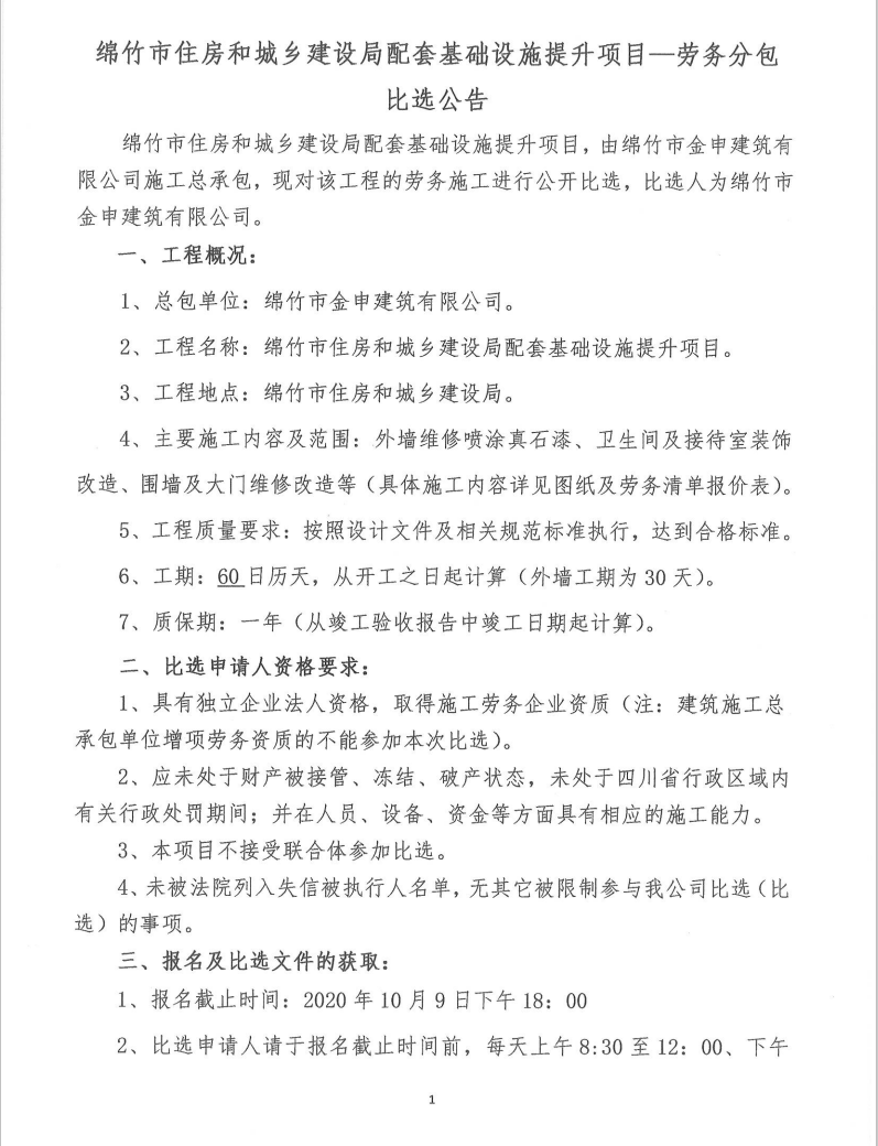 綿竹市住建局配套基礎設施提升項目——勞務(wù)分包比選公告