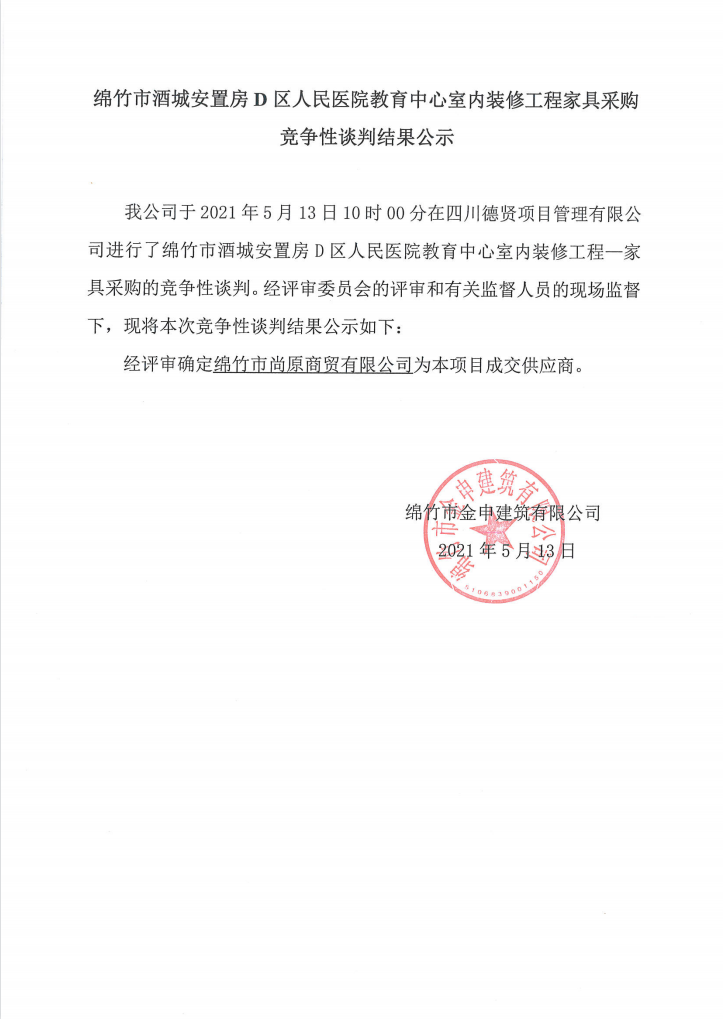人民醫院教育中心室內裝修工程—家具采購談判結果公示
