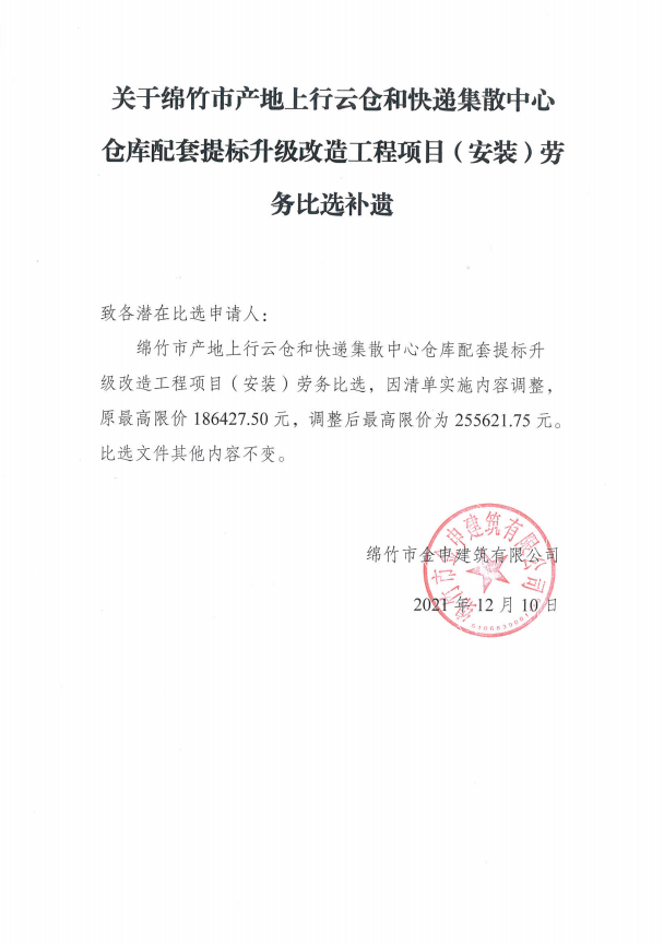 倉庫配套提標升級改造工程項目(安裝)勞務(wù)分包比選補遺