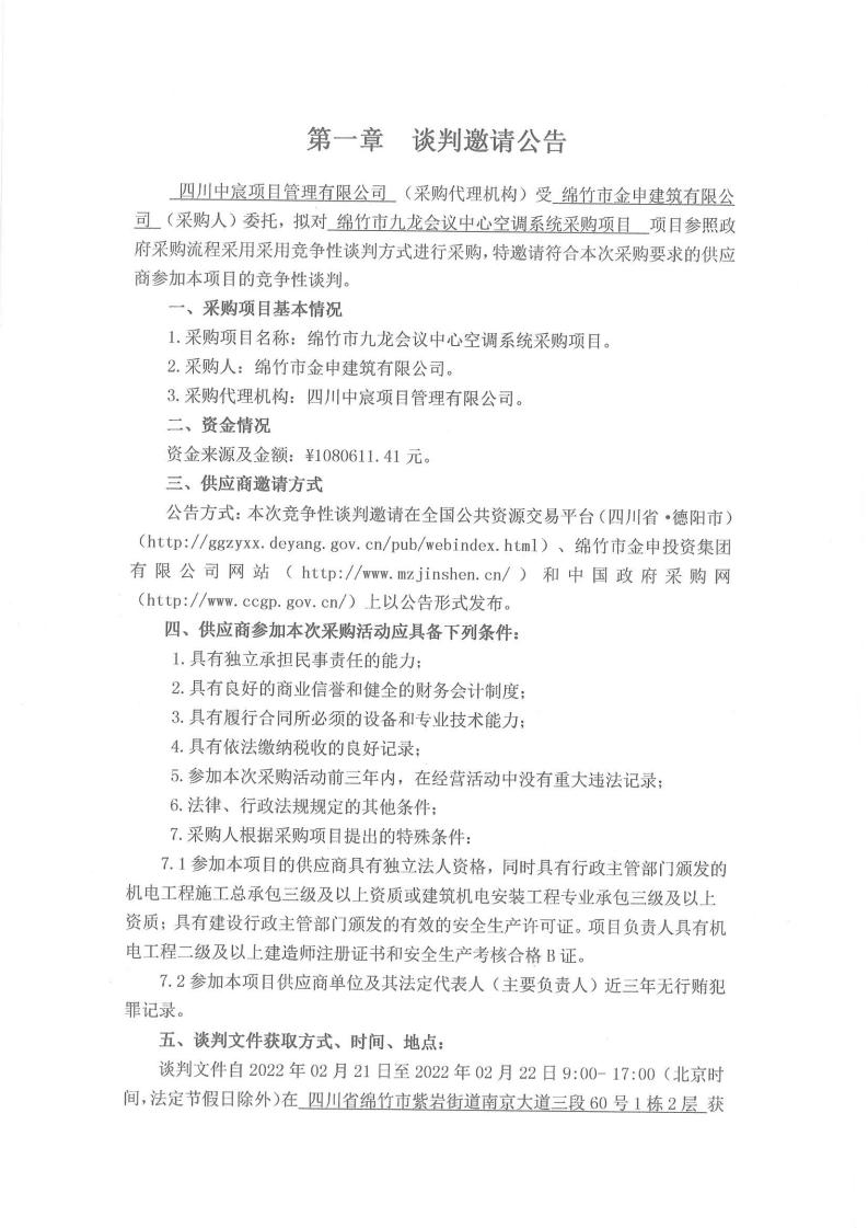 九龍會(huì )議中心空調系統采購項目談判邀請公告