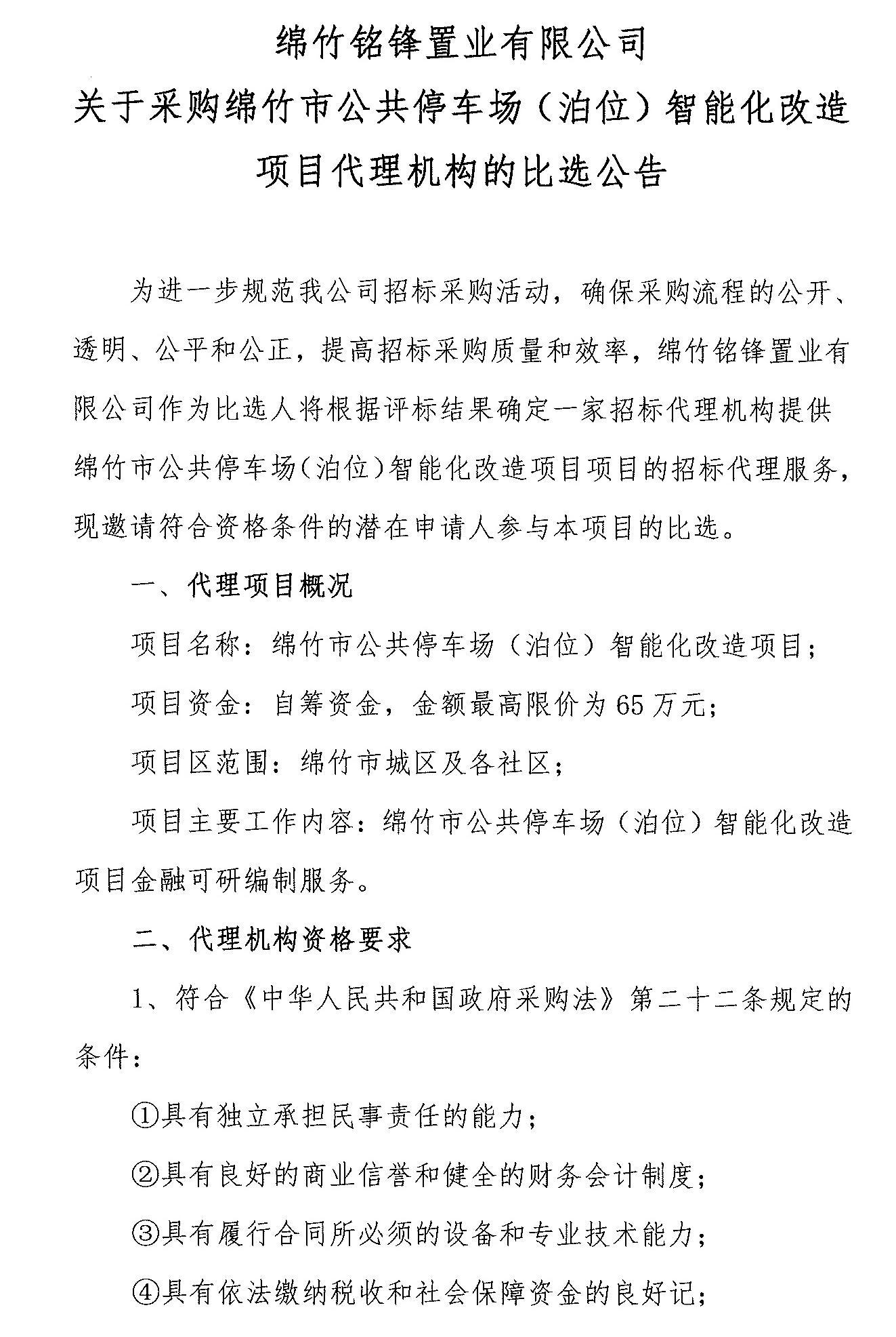 綿竹市公共停車(chē)場(chǎng)(泊位)智能改造項目代理機構比選公告