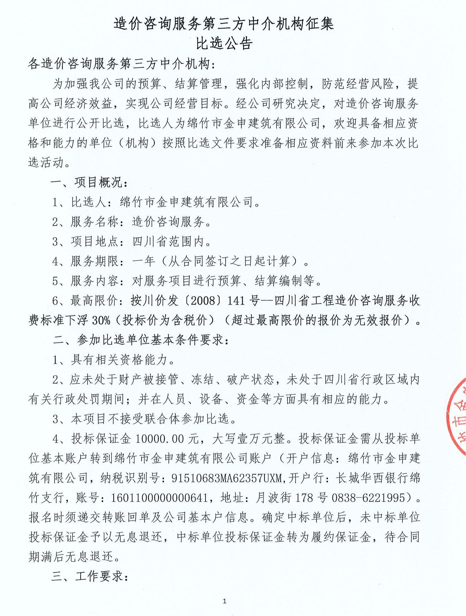 造價(jià)咨詢(xún)服務(wù)第三方中介機構征集比選公告